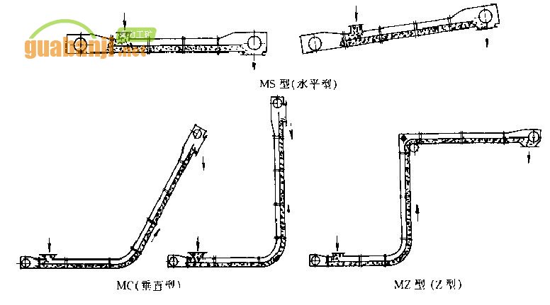 埋刮板輸送機產(chǎn)品常見型號及布置形式示意圖: