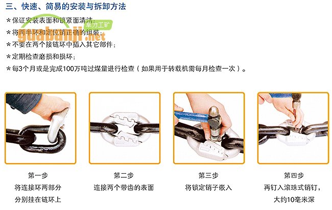 弧齒型接鏈環用來鏈接垂直面或水平面的礦用圓環鏈,主要與刮板輸送機、轉載機、跑煤機使用的GB/T12718規格的礦用圓環鏈配套使用。