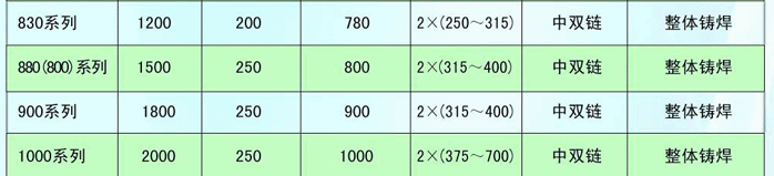 SGZ刮板機為正常中雙鏈,可以根據具體情況選用,常用中型刮板機型號及參數如下: